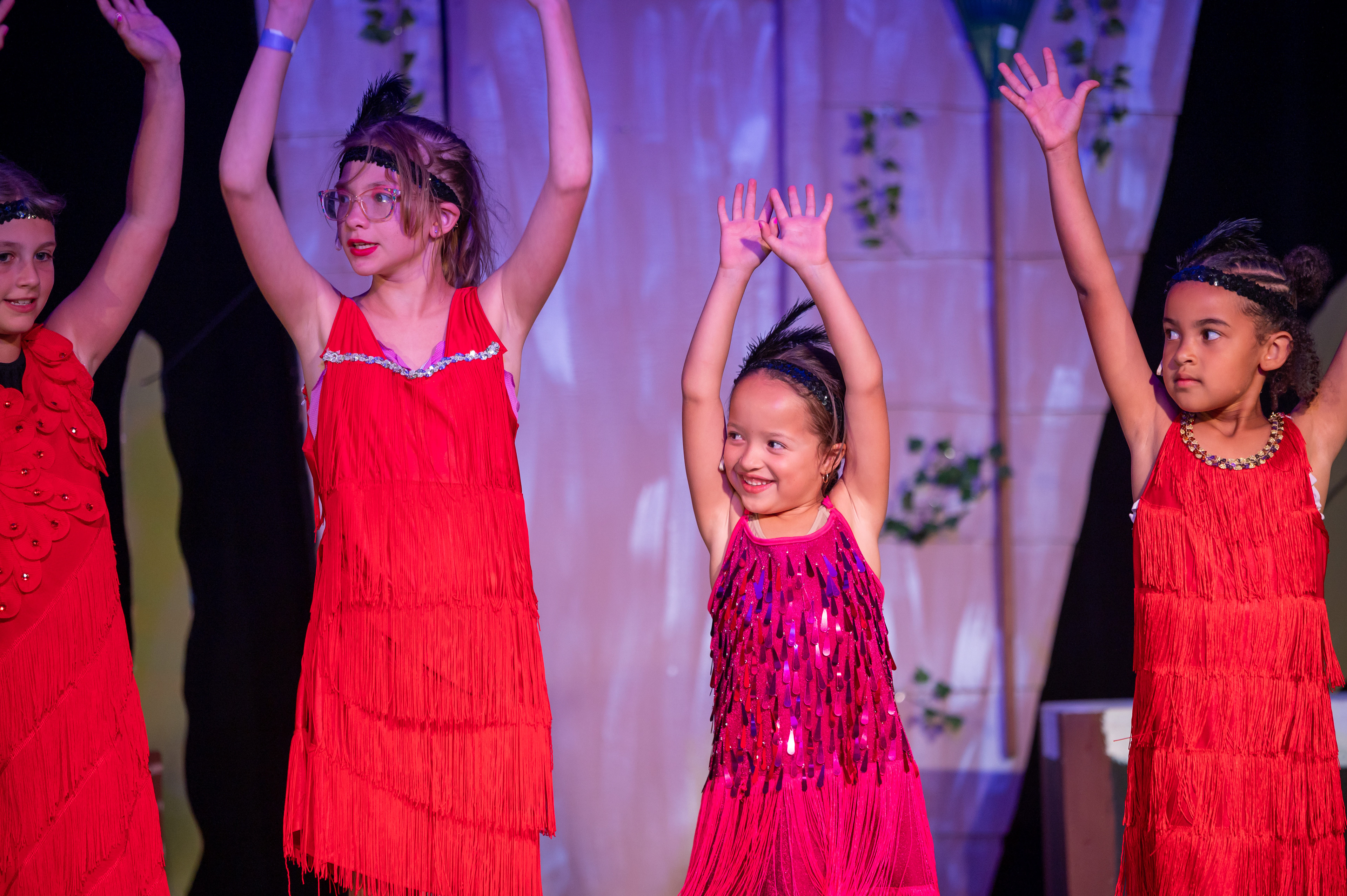 Shining Stars take the next step in performing arts. Students learn choreography, how to read basic music and notation, improve reading and memorization skills, and begin character development while gaining confidence, learning to project, and how to work as a team. The program ends with a 30-minute musical where every student gets their moment to shine.