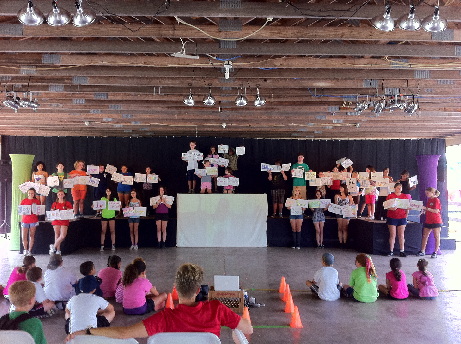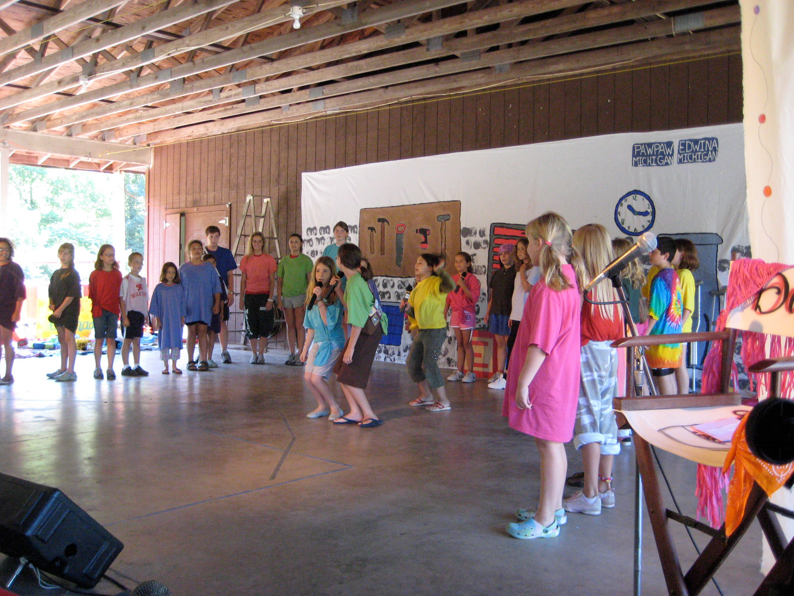 The program grows to a 4th session with the show choir style "Glee." The "black curtain" makes it debut and the pavilion is starting to look more like a theater.
